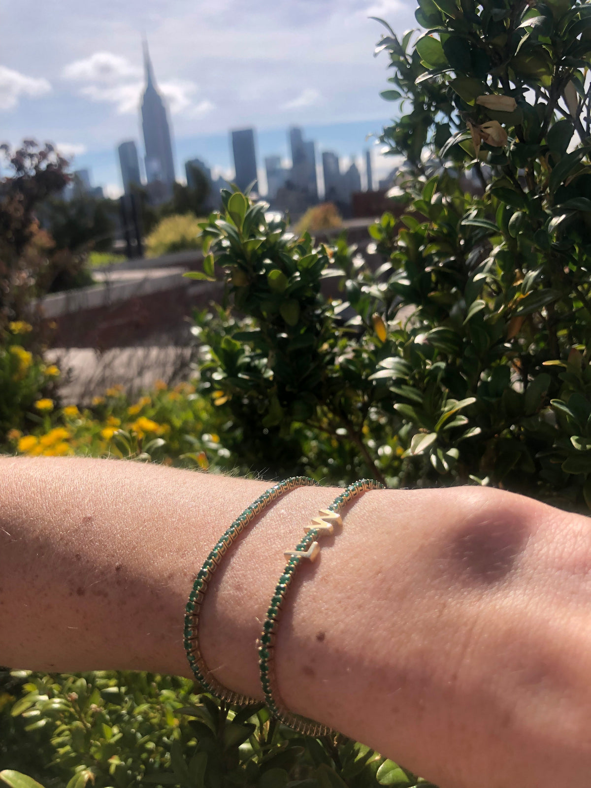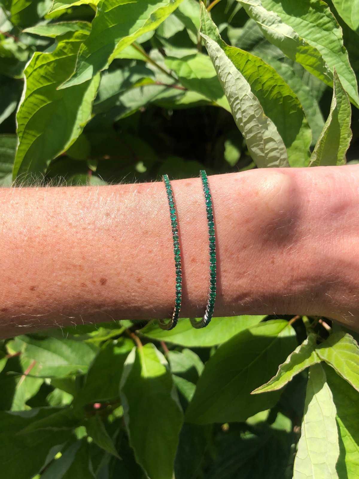 This Natural Emerald Tennis Bracelet by Alexis Jae captures the lush beauty of nature in an ultra-dainty and finely crafted design. Featuring a continuous row of vibrant round emeralds, each meticulously prong-set, this bracelet adds a refreshing burst of color and grace to your wrist. Whether worn alone or stacked with diamonds and other gemstones, it’s a refined expression of luxury and personal style. Particularly meaningful as a May birthstone gift, this piece exudes timeless sophistication with a hint of modern edge.