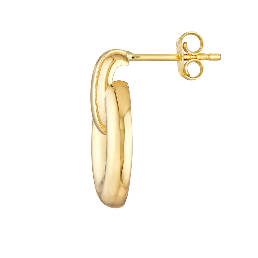 Handcrafted in 14K yellow gold with a secure closure and dangle hoop silhouette.