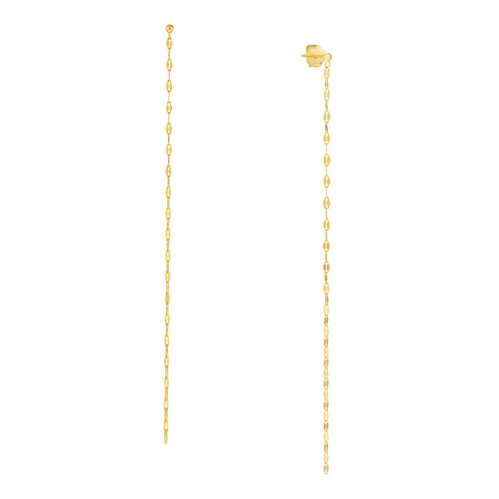 These Chain Duster Earrings by Alexis Jae embody elegance in motion. Featuring ultra-fine hammered Forzentina chains, they delicately sway with every movement, lending a sense of fluid sophistication. Lightweight and elongated, these earrings are made for graceful day-to-night wear. With their ethereal silhouette, they offer a subtle yet captivating presence, ideal for those who appreciate understated luxury. A perfect choice for modern minimalists who still want to make an impact.