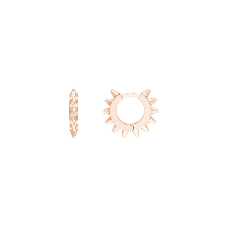 These Spiky Hoop Earrings by Alexis Jae infuse attitude into the timeless hoop silhouette. Bold yet refined, the spiked detailing adds a contemporary edge to your look while keeping things lightweight and easy to wear. These mini huggies are made for those who want to elevate their accessory game with flair and individuality. The perfect mix of punk-chic and polished luxury.