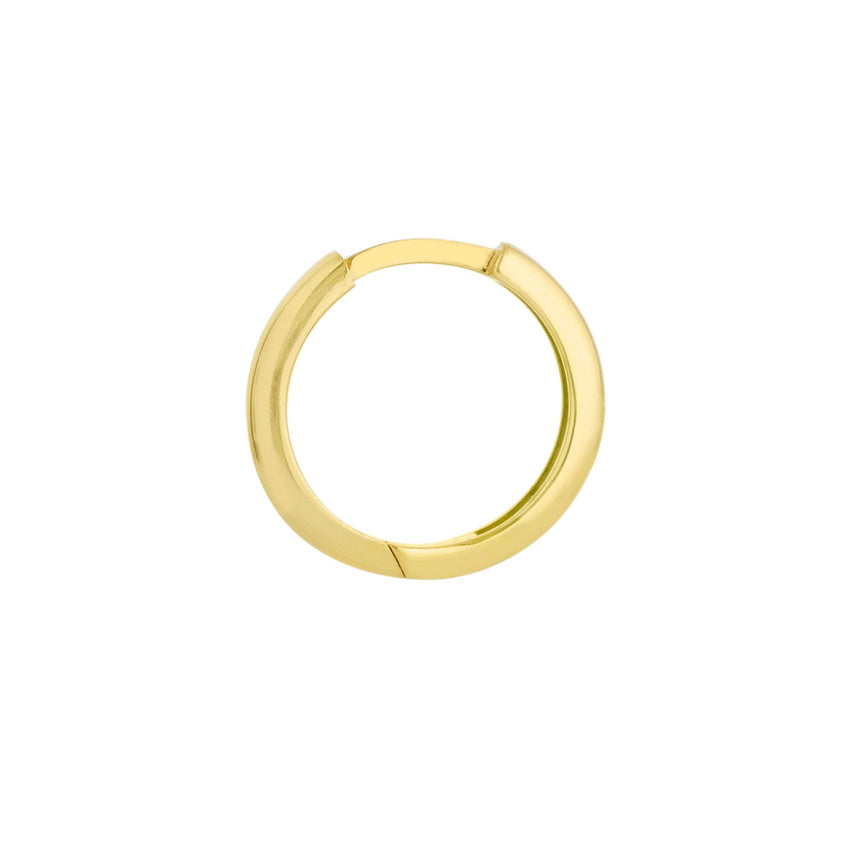 Crafted in 14K yellow gold, measuring 13mm x 2mm. Smooth finish with minimalist design.