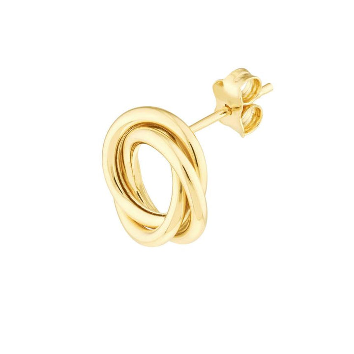Cast in 14K yellow gold with a push-back closure. Bold, sculptural knot design.