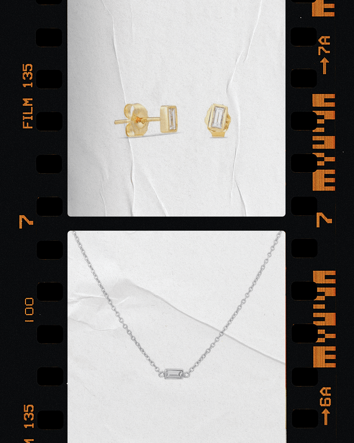 These Baguette Diamond Studs by Alexis Jae are a refined nod to modern minimalism. The clean lines of the bezel-set baguette-cut diamonds create a sleek and polished look, perfect for layering or wearing alone for a crisp sparkle. Ideal for first or second piercings, these understated studs strike a balance between everyday wear and subtle sophistication. Their low-profile setting and geometric form add a contemporary edge to a timeless silhouette.