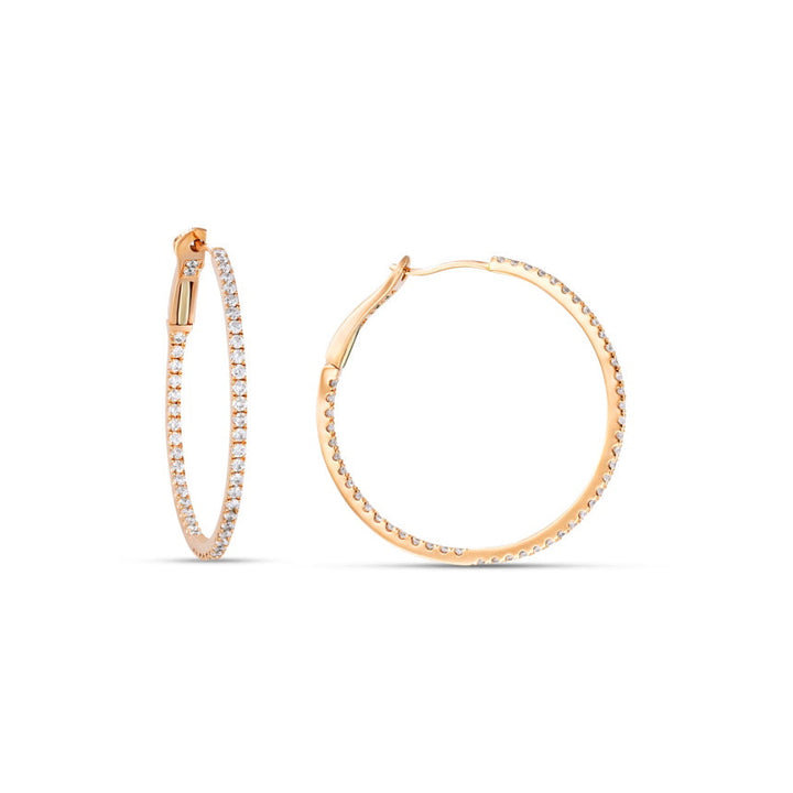 These 1 Carat Diamond Hoops by Alexis Jae are the epitome of refined brilliance. Featuring an inside-out diamond setting that maximizes sparkle from every angle, these 30mm hoops are a statement in timeless luxury. Their elegant round silhouette ensures they remain a staple for both day and evening wear, blending modern sophistication with classic charm.