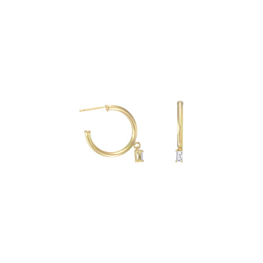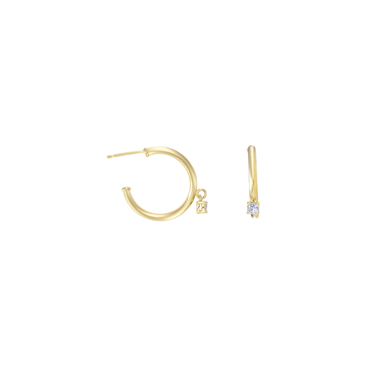 These Hoop Earrings with Diamond Drop by Alexis Jae redefine classic hoops with a modern twist. A delicate diamond—round or baguette—dangles from sleek, hollow gold hoops for a touch of luxe movement. Elegant yet understated, they suit both daywear and evening glam.