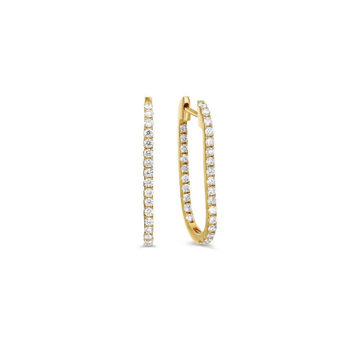 Made in 14K solid gold (yellow, white, or rose) with brilliant-cut diamonds. Hoop size: 20x12mm. Style: Traditional.