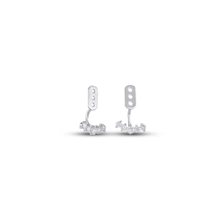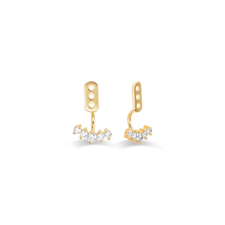 These Diamond Earring Jackets for Diamond Studs by Alexis Jae add instant brilliance and glamour to your existing studs. Featuring a graceful arc of brilliant-cut diamonds, each jacket creates a radiant halo that elevates your everyday earrings. Designed to effortlessly slide onto your favorite pair, these versatile accessories are a refined way to transform classic studs into a dazzling statement. Perfect for special occasions or adding a luxe edge to your daily look.