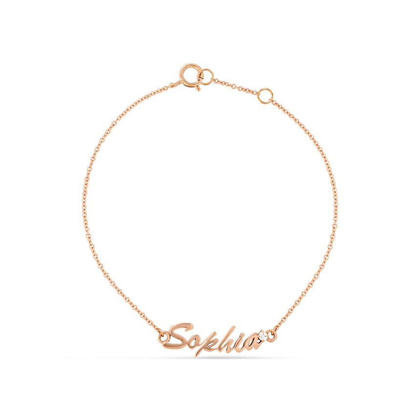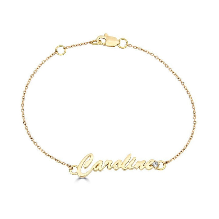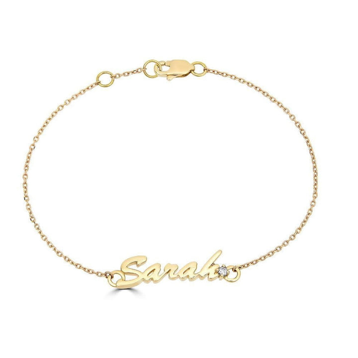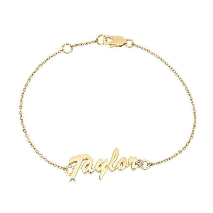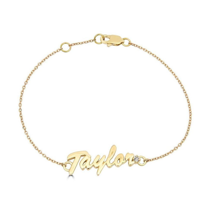 This Customized Bracelet With Name by Alexis Jae is a beautiful blend of modern sophistication and heartfelt personalization. Designed to reflect your identity or honor a meaningful connection, this bracelet showcases an elegant name in contemporary cursive script, punctuated by a delicate diamond for added sparkle. Its minimal, stackable silhouette adapts effortlessly to both casual and formal ensembles. Whether it features your name, a loved one's, or an inspiring word, this bracelet becomes a timeless memento that feels as personal as it looks polished.