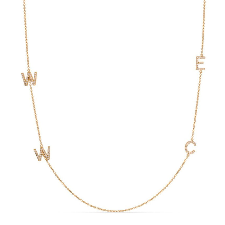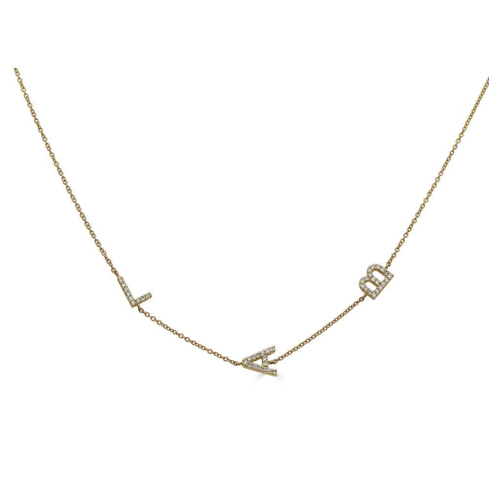 Handcrafted in 14K solid gold (yellow, white, or rose) with approx. .08 cttw GH natural diamonds. Initial size: 7mm. Chain: 16' with loop at 15'.
