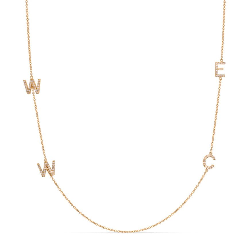 This Pave Diamond Initial Necklace by Alexis Jae makes personalization sparkle. Set with shimmering GH diamonds, the sideways initial design adds a stylish twist to a classic pendant. A dainty, dazzling favorite that’s meaningful and modern—perfect for gifting or layering with your everyday stack.