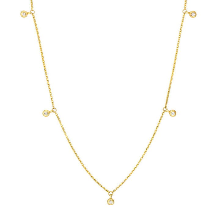 This Floating Bezel Diamond Necklace by Alexis Jae celebrates refined simplicity with an ethereal twist. Featuring round-cut diamonds floating in delicate bezel settings, this necklace creates a subtle shimmer that enhances every outfit. The alternating diamond sizes add visual rhythm and a soft elegance, making it a treasured everyday piece.