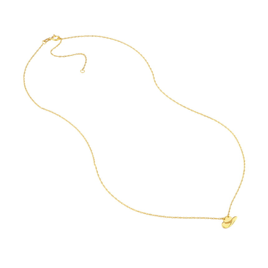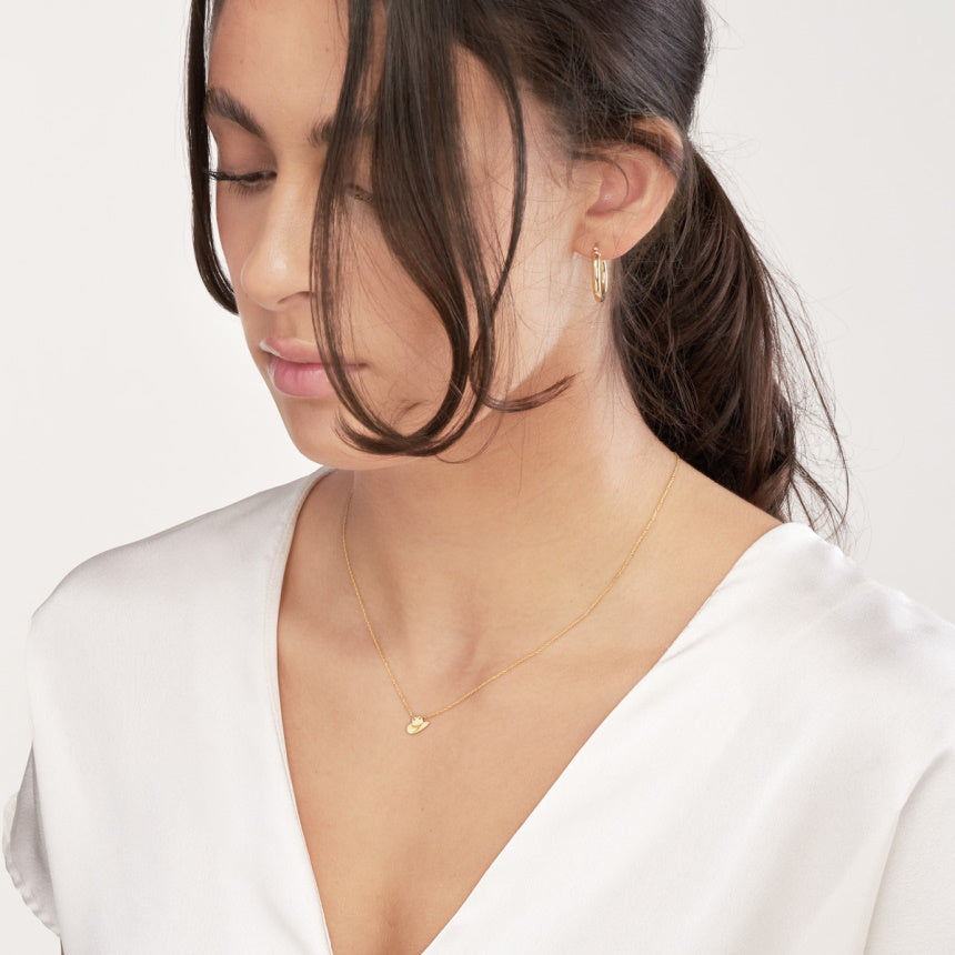 Made in 14K solid gold (yellow, white, or rose). Pendant hangs from an 18' chain with a jump ring at 16'. Finished with a spring ring clasp.