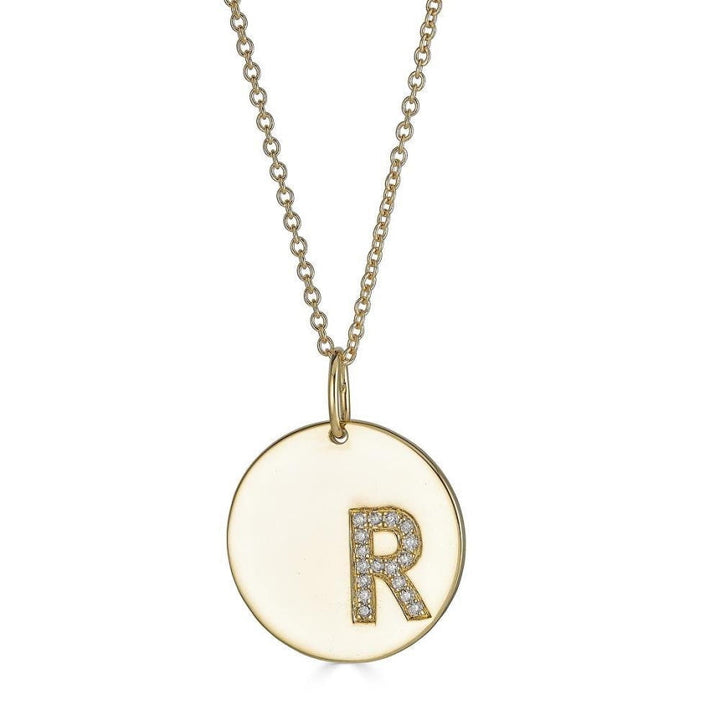 Handcrafted in 14K solid gold (yellow, white, or rose) with approximately .07 carats of diamonds (varies by letter). 18' chain with a 16' jump ring.