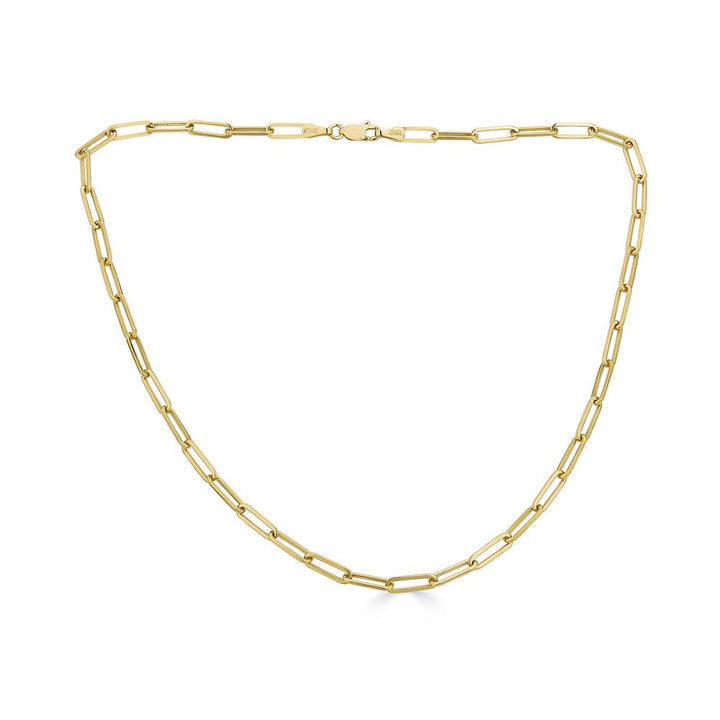Handcrafted in 14k gold (yellow, white, or rose) with 3.85mm paperclip links. Adjustable lobster clasp. Chain length: 16'–24'.