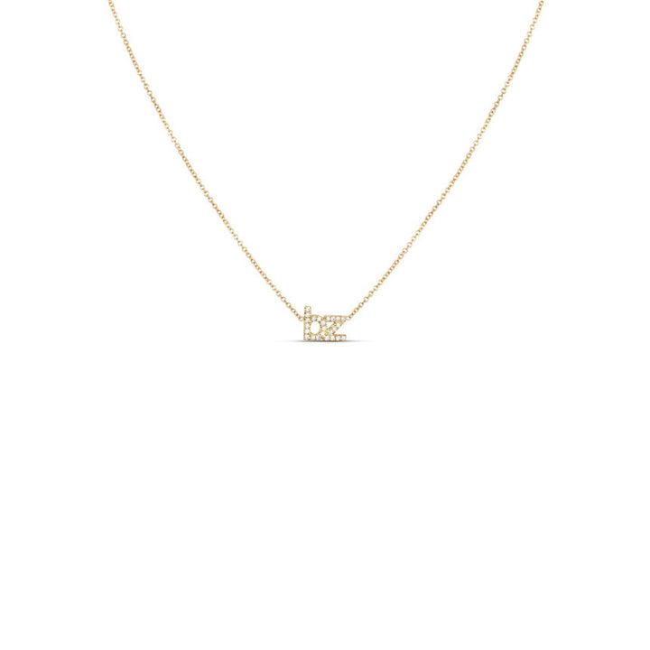 Handcrafted in 14k solid gold (yellow, white, or rose), with two 7mm diamond-studded initials totaling ~0.13 cttw. Suspended on a 16” cable chain with 2” of jump rings. Spring ring clasp.