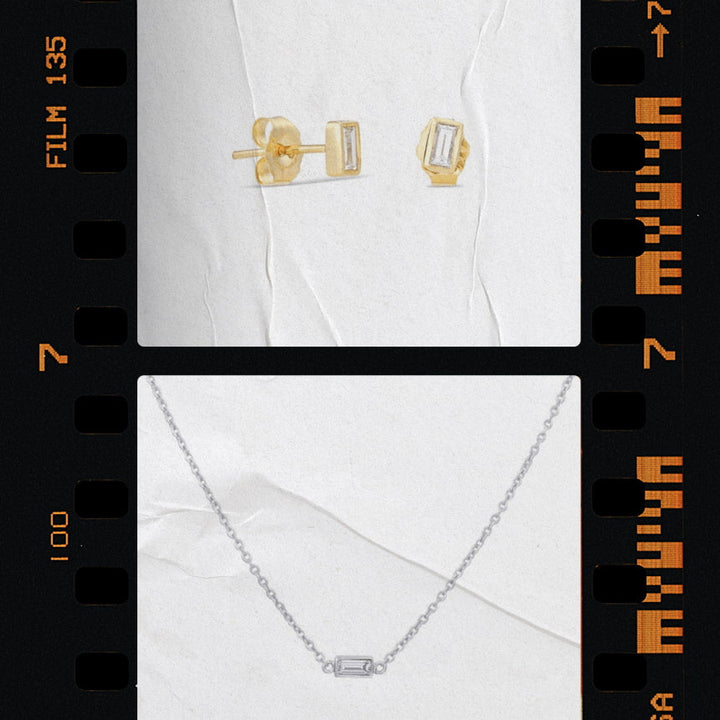 This Baguette Solitaire Necklace by Alexis Jae pairs architectural beauty with minimalist brilliance. A sleek baguette-cut diamond is framed in a bezel setting, radiating a subtle yet confident shine. The refined silhouette makes it ideal for daily wear, and the modern design layers seamlessly with other necklaces. An elegant nod to contemporary luxury, this piece brings sophistication with every shimmer.
