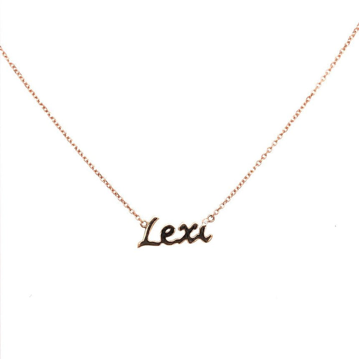 Made in 18K solid gold (yellow, white, or rose), with custom nameplate and diamond accent on the “i”. Chain measures 16' with a jump ring at 15'. Personalized preview provided before crafting.