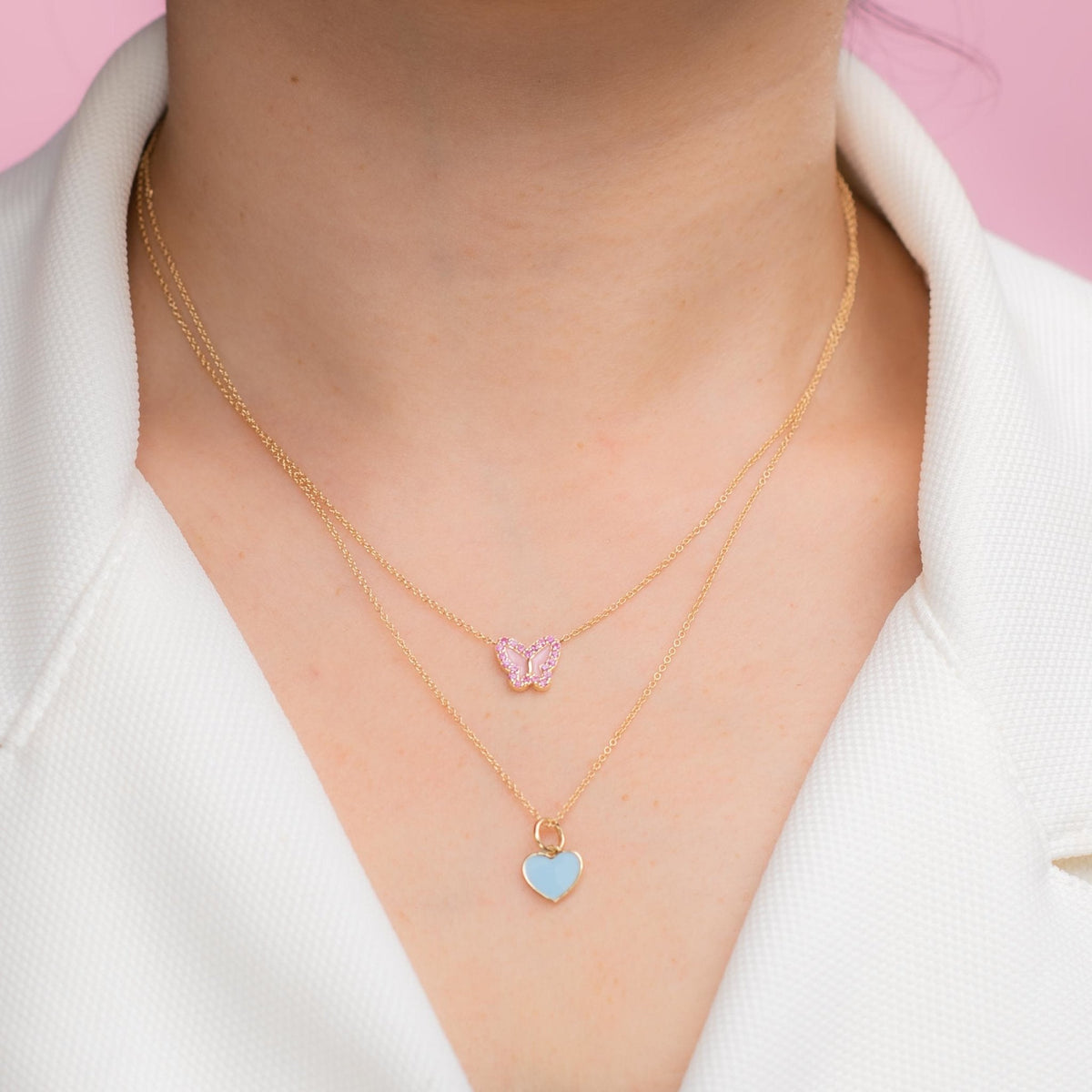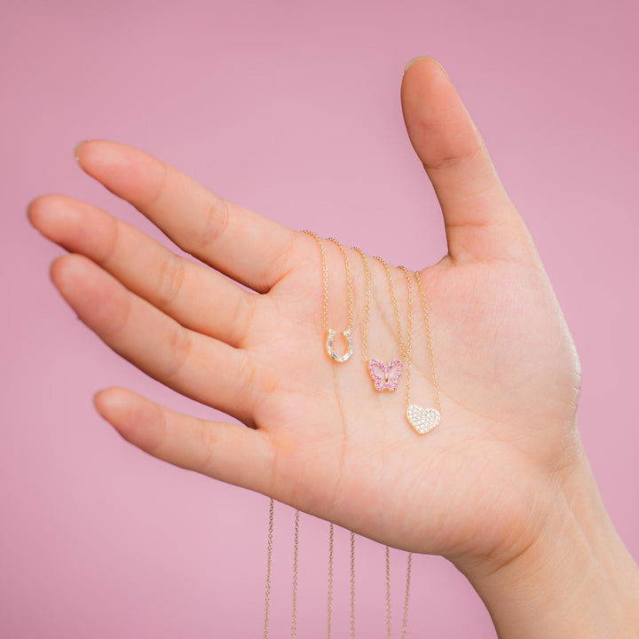 This Pink Sapphire Butterfly Necklace by Alexis Jae is a charming blend of whimsy and luxury. The petite butterfly design gleams with pink sapphire wings, capturing a playful yet elegant aesthetic. Set in 14K gold and sized for daily wear, it offers a touch of vibrant sparkle that works for both youthful style and elevated layering. A perfect gift or treat-yourself piece with a timeless feminine touch.