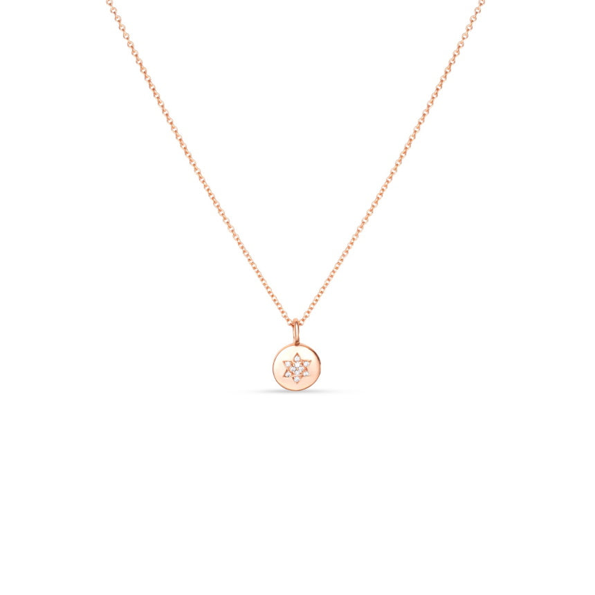 This Dainty Star of David Necklace by Alexis Jae is a heartfelt expression of heritage and style. A small gold disc holds a finely cut Star of David, representing faith, strength, and tradition with minimalist elegance. Available in two sizes, this necklace layers easily and makes a meaningful gift for bat mitzvahs, Hanukkah, or everyday spiritual wear.
