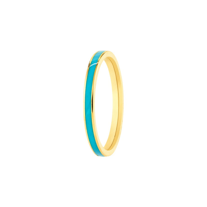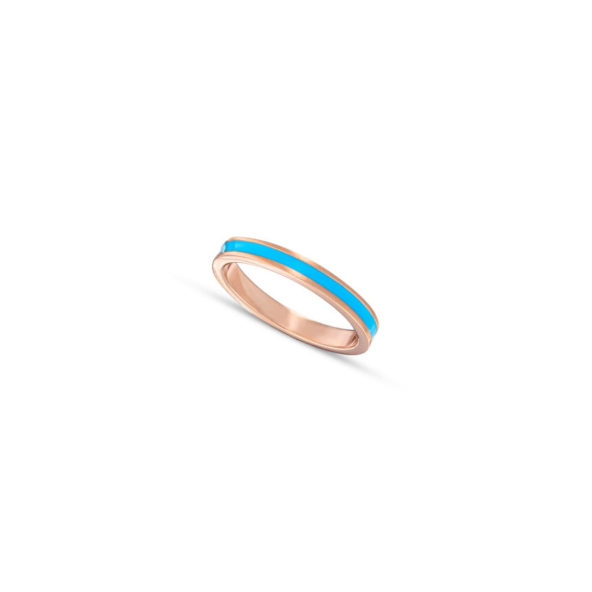 This Turquoise Enamel Ring by Alexis Jae adds a pop of playful color to your ring stack. The slim, polished band is coated in vivid turquoise enamel, offering a modern twist on fine jewelry. Wear it alone for a pop of color or stack it with other enamel or gold bands for a fresh, fashion-forward look.