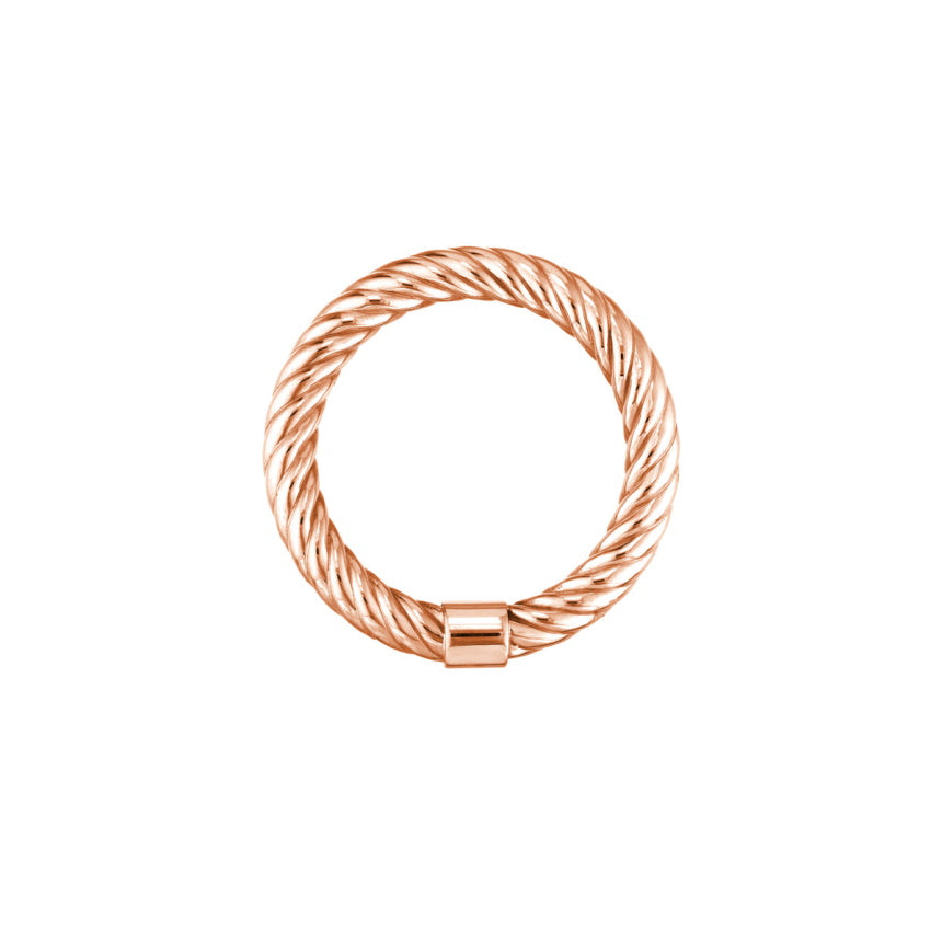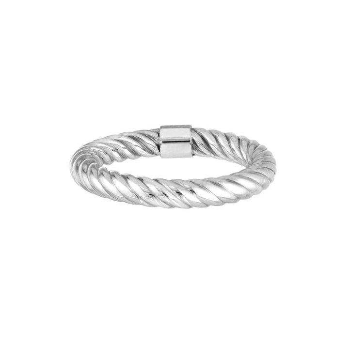 This Twisted Anniversary Band by Alexis Jae is a bold reinterpretation of a timeless token of love. Its distinctive twisted design symbolizes the beautiful complexities of partnership. Wider and more sculptural than traditional bands, this ring is both a conversation piece and a symbol of enduring commitment.