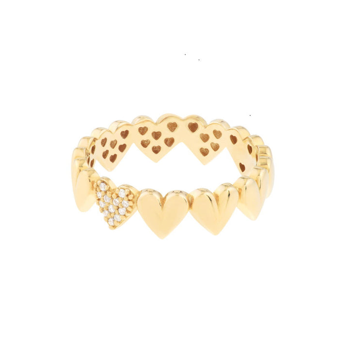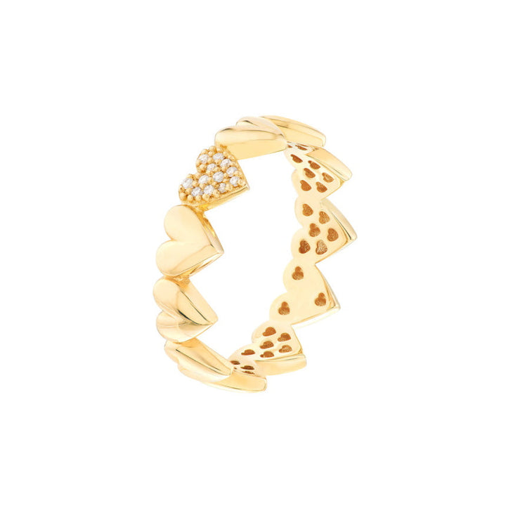 This Ring With Hearts All Around by Alexis Jae is a romantic symbol of enduring affection. Tiny gold hearts wrap the entire band, with one diamond-set heart sparkling at the center. A celebration of love and devotion, it’s perfect for gifting on anniversaries or just because.