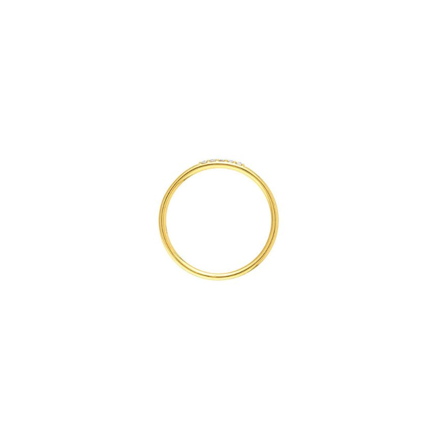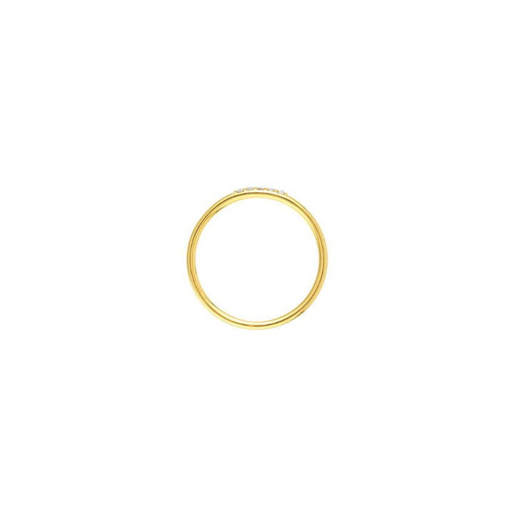 Made in 14k solid gold (yellow, white, or rose). Set with .05 ctw round white diamonds. Available in sizes 6–8.