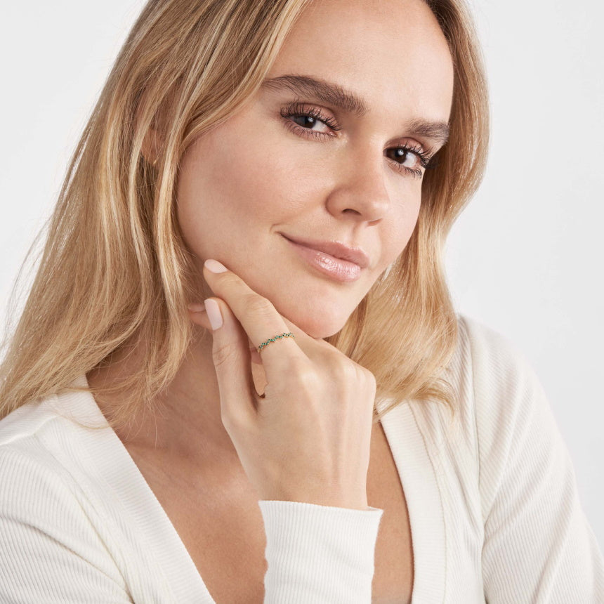 This Eternity Ring With Birthstones by Alexis Jae redefines timeless with a playful twist. The dynamic zigzag design dances with colorful gemstones—each birthstone a unique reflection of personality, memory, or milestone. Whether you choose a rainbow of hues or stick to one meaningful gem, this ring offers a personalized way to celebrate life's turning points. It's a joyful, expressive take on classic eternity style.