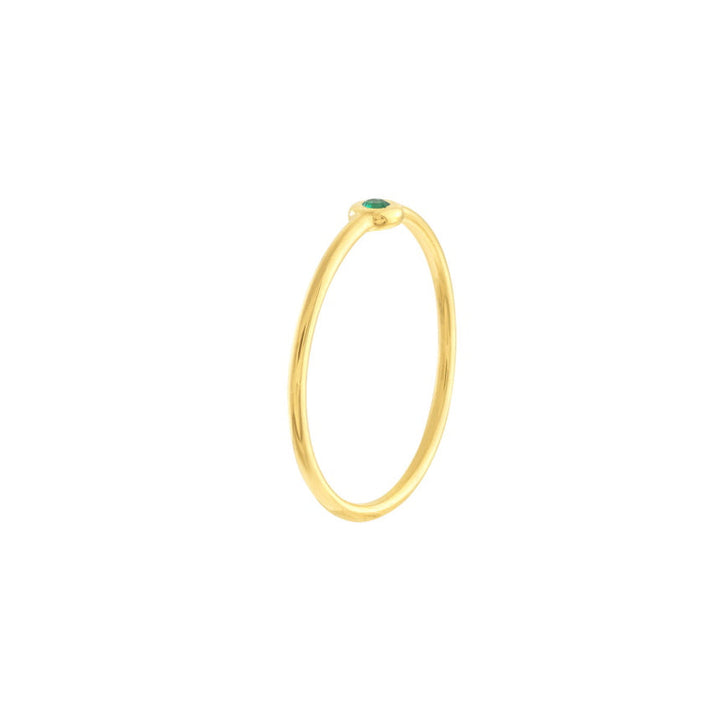 Made in 14K solid gold (yellow, white, or rose), set with a natural green emerald totaling .03 carats. Available in sizes 6–8. Contact for additional sizing.