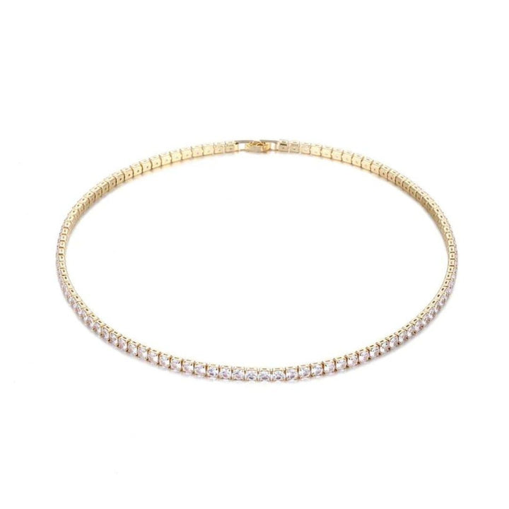 Vettona is a fashion jewelry brand creating high-quality pieces designed to leave a lasting impression on the wearer. The founders embarked on a journey to craft pieces that are truly special and empower women to feel confident and beautiful throughout their everyday life. Their goal is simple yet profound – to inspire you to feel your best. Blending current trends with timelessness, Vettona presents jewelry with a classic twist that will never go out of style.Style notes: This rhodium-plated round cut gold tennis necklace sparkles with gorgeous stones. Easy to mix and match, it offers simple and delicate elegance. A perfect gift. With its timeless look, this piece is sure to become a classic in your wardrobe. An elegant addition that pairs easily with any outfit, it will become your go-to for special occasions. Its versatile design makes it a must-have for all occasions, while its superior craftsmanship gives it a luxurious finish. Its delicate appearance and subtle beauty will make a lasting impression. Price: Please note price may vary due to exchange rate differences or shipping, duties and taxes. Price may also vary with materials choice. Final price is calculated at checkout at the designer's website. Materials: 14k gold-plated. Dimensions: Length 40cm. Width 3mm.