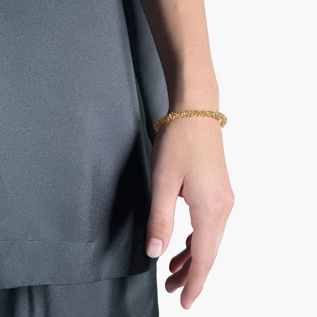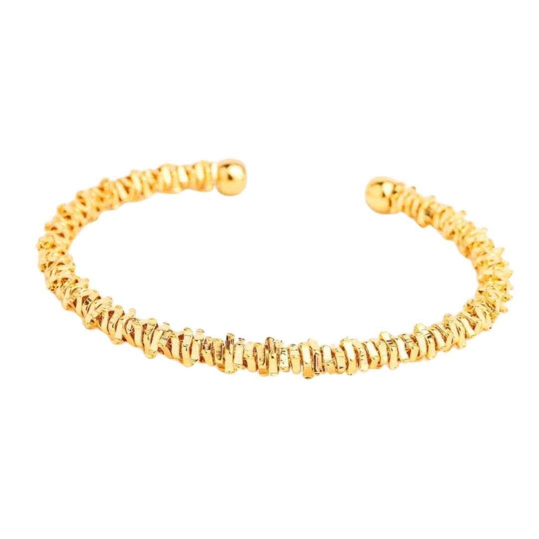 Vettona is a fashion jewelry brand creating high-quality pieces designed to leave a lasting impression on the wearer. The founders embarked on a journey to craft pieces that are truly special and empower women to feel confident and beautiful throughout their everyday life. Their goal is simple yet profound – to inspire you to feel your best. Blending current trends with timelessness, Vettona presents jewelry with a classic twist that will never go out of style.Style notes: Searching for a spectacular and adaptable piece of jewelry? This bracelet boasts a unique native design that's sure to garner attention. Crafted with attention and care for a flawless fit, it's perfect for dressing up special looks and occasions.Price: Please note price may vary due to exchange rate differences or shipping, duties and taxes. Price may also vary with materials choice. Final price is calculated at checkout at the designer's website. Materials: 14k gold-plated. Dimensions: Length 7.08' / 180mm. Thickness 0.19' / 5mm.