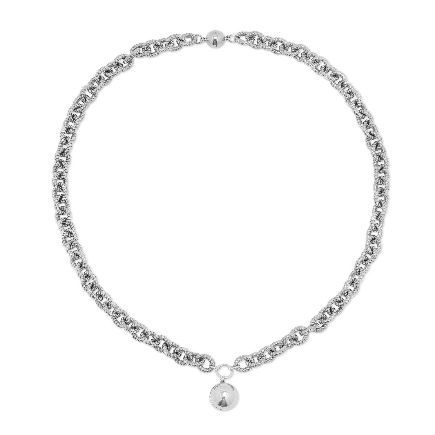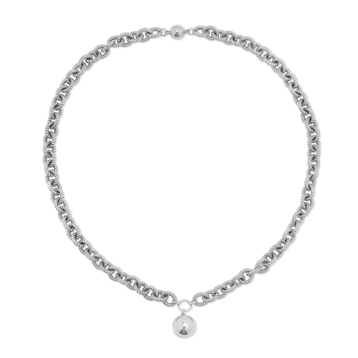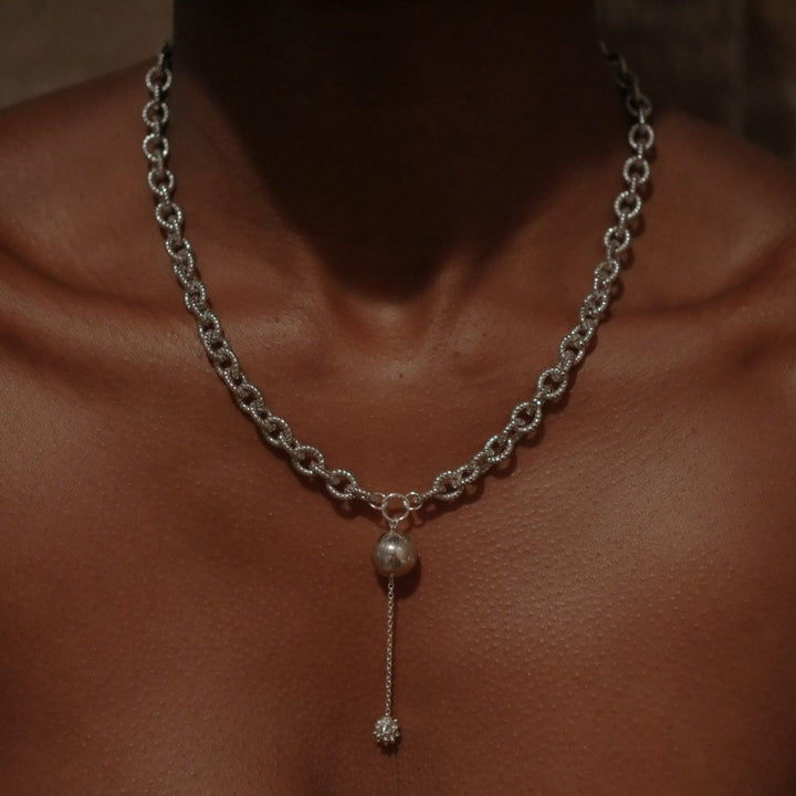 Style Notes: This Stella Chunky Necklace by Monbouquette makes a striking yet versatile statement with its ridged rope-inspired texture and bold silhouette. Designed to elevate everything from a white tee to evening tailoring, it transforms from classic chain to sculptural lariat with a simple flick of the hidden mechanism—making it two necklaces in one. A staple in silver, it channels strength, modernity, and adaptability in every link.