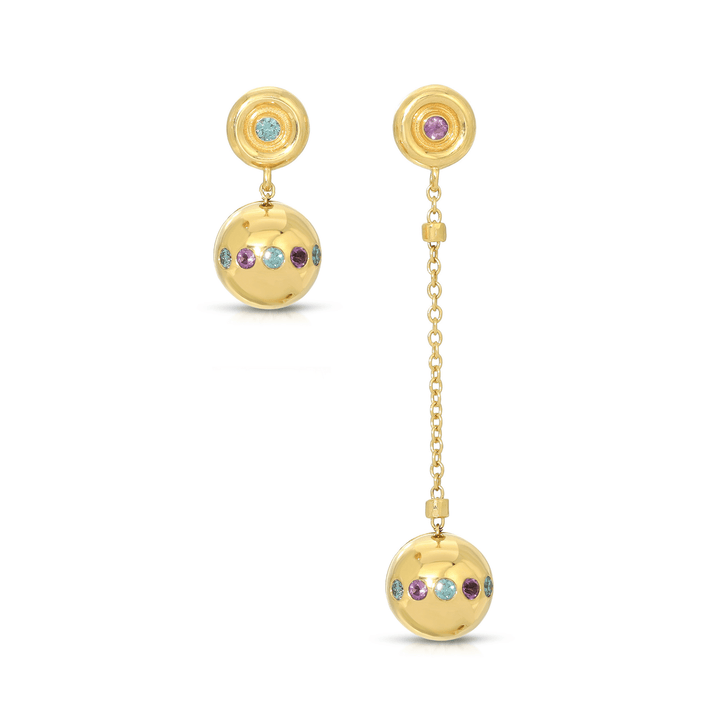These Petite Aurora Drops by Monbouquette Jewelry are designed to shift with your mood and moment. Inspired by the celestial colors of the Aurora Borealis, each earring effortlessly transforms from a minimalist stud to a striking drop with a gentle click. Just insert your fingernail into the discreet slit to let the petite sphere drop to the jawline. Their “petite” silhouette is a refined version of the signature Chubby spheres, perfect for balancing subtlety and sparkle. Ideal for the modern woman who embraces both quiet elegance and daring charm.