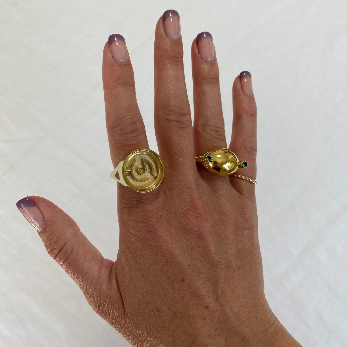 Style Notes: This Petite Maze Ring by Monbouquette Jewelry is equal parts statement and interactive sculpture. A playful pearl glides through the labyrinthine gold design, offering a meditative alternative to digital distraction. Bold and beautifully detailed, it’s a conversation-starting piece that brings tactile fun to your everyday look.