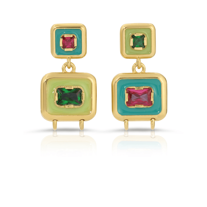 These Tropix Snapback Earrings by Monbouquette Jewelry are an electric splash of color and clever design. Pull gently to release a second stone drop in vibrant enamel hues—then snap them back into sleek studs. Inspired by tropical fruit palettes and joyful expression, they’re a bright way to accessorize any mood.