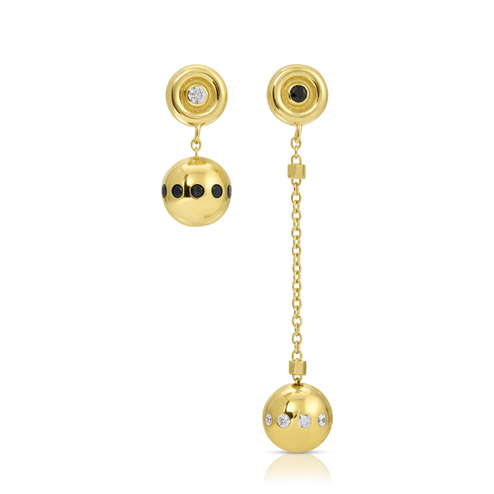 These Petite Icy Ink Drops by Monbouquette Jewelry offer an icy-cool edge with refined function. Just flick the discreet mechanism to release the petite sphere, letting it fall to your jawline for a bolder, longer silhouette. Sleek, stylish, and shimmer-ready—perfect for asymmetrical styling or matching pairs.
