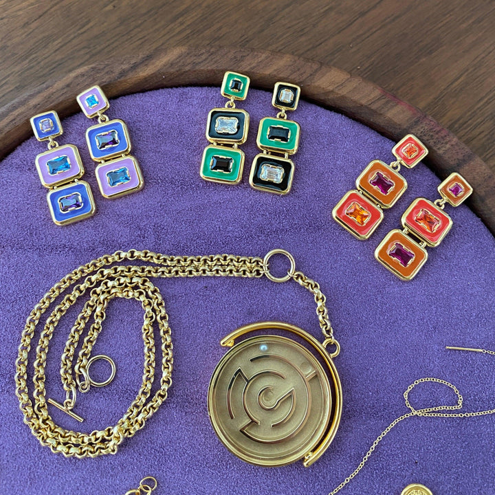 These Sunny Snapback Earrings by Monbouquette Jewelry bring the sunshine with their radiant color palette and retro-Hollywood flair. Pull on the back to reveal a vibrant drop of enamel and stone, or snap them back for a polished stud. Designed to reflect California’s golden spirit, they’re as joyful as they are versatile.