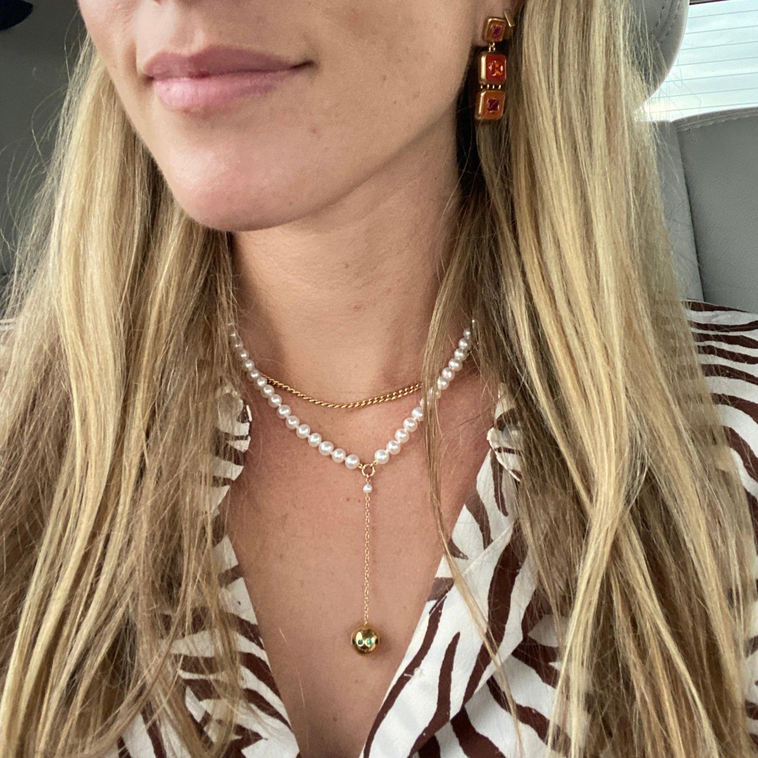 This Nuni Clover Necklace by Monbouquette blends earthy elegance with thoughtful design. Lush green stones encircle the golden sphere, suspended on a delicate strand of freshwater pearls. A flick of the charm reveals a pearl and cable chain above, creating two looks in one. A tribute to balance, growth, and intentional beauty.