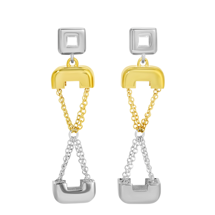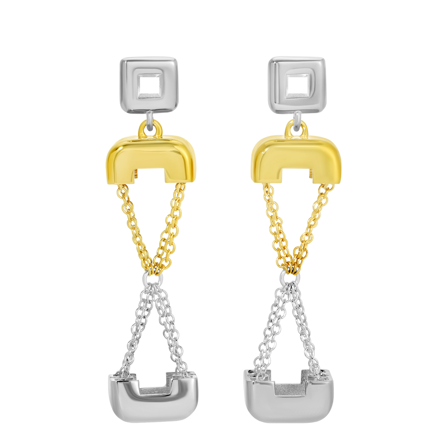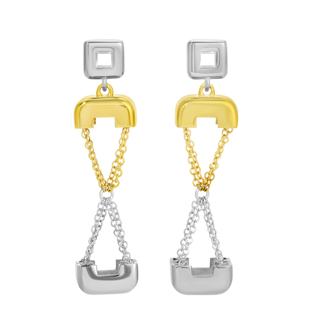 Style Notes: These Hollow Hatch Earrings by Monbouquette Jewelry are an architectural feat in mixed metals. Two-tone cubes open to reveal a burst of fine chains and a cheeky inner square. Stylishly engineered to drop jaws as they drop in form, they’re a statement of intelligent luxury.