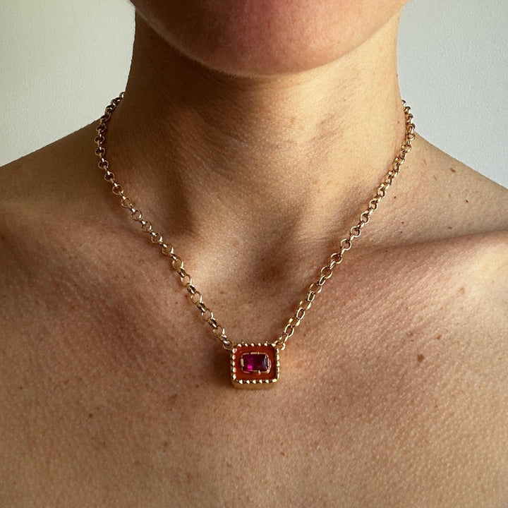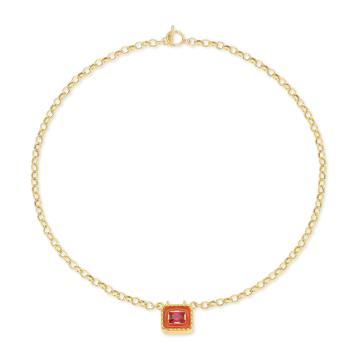 Materials: Ethically mined 23.5-karat yellow gold premium plating over recycled brass with colored enamel and lab-grown stones. 16' gold-filled chain made from recycled brass with 100x more gold alloy than gold-plated alternatives.