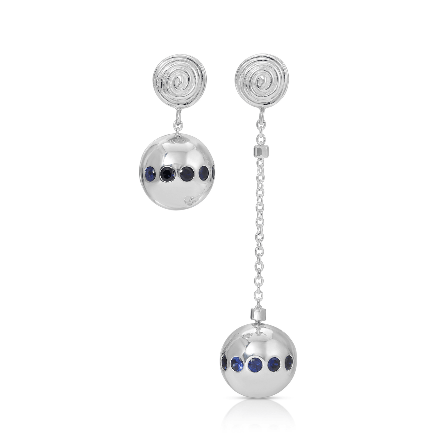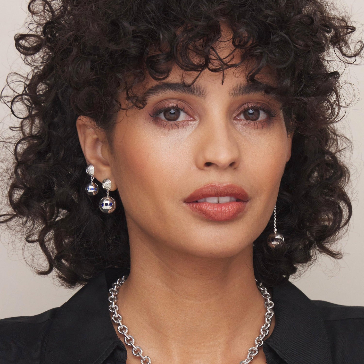 These Chubby Midnight Drops by Monbouquette Jewelry expand on the signature elegance of the petite version, offering a bolder take on duality and movement. The spiraled stud anchors a dramatic drop, glimmering with deep-hued stones for a look that’s as impactful as it is versatile.