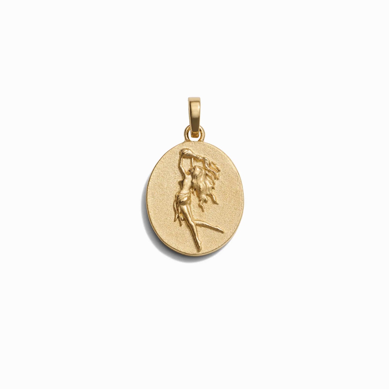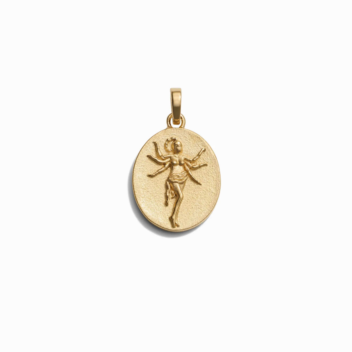 Style Notes: This Zodiac Goddess Pendant by Awe Inspired celebrates divine femininity and celestial connections. The double-sided pendant features a celestial Goddess on one side and her corresponding constellation on the other, making it a meaningful and mystical addition to any collection.