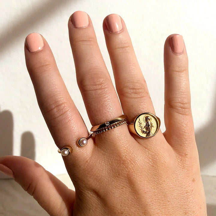 This Joan of Arc Signet Ring by Awe Inspired embodies the fierce spirit of Joan of Arc, reminding women that they can achieve anything. The signet ring design is bold yet elegant, making it a perfect accessory for those seeking strength and inspiration.