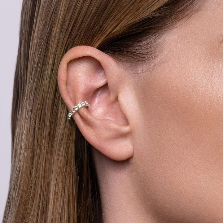 This White Topaz Ear Cuff by Awe Inspired is a simple yet striking piece that shines on its own or pairs beautifully with other styles. Its brilliant white topaz adds just the right touch of elegance and sparkle.