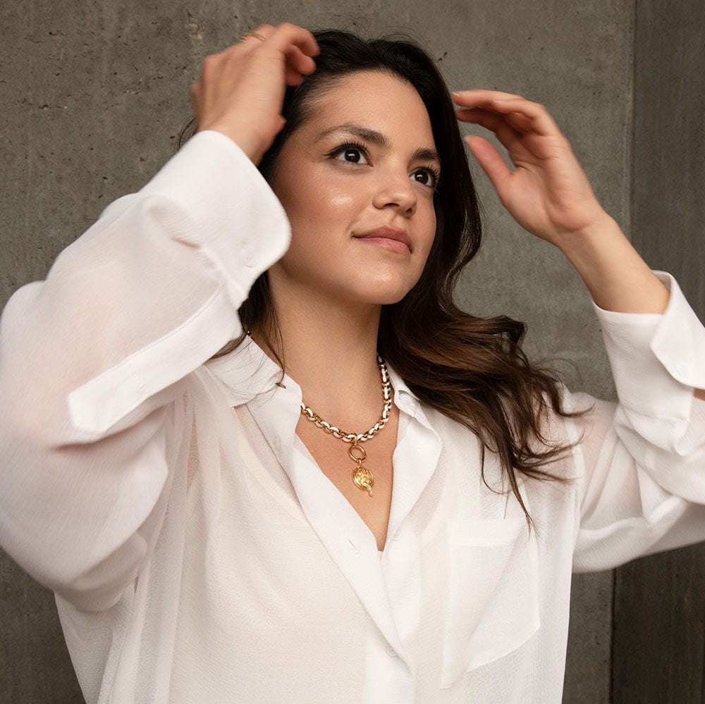 Handcrafted in 14K yellow gold vermeil, featuring a large charm collector design.