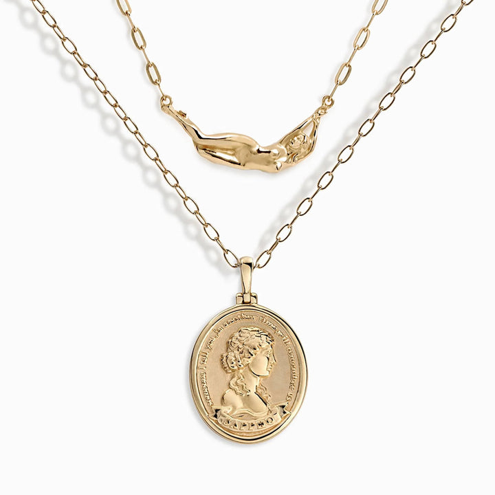 Handcrafted in 14K yellow gold vermeil, featuring a Sappho pendant with an inscribed quote.