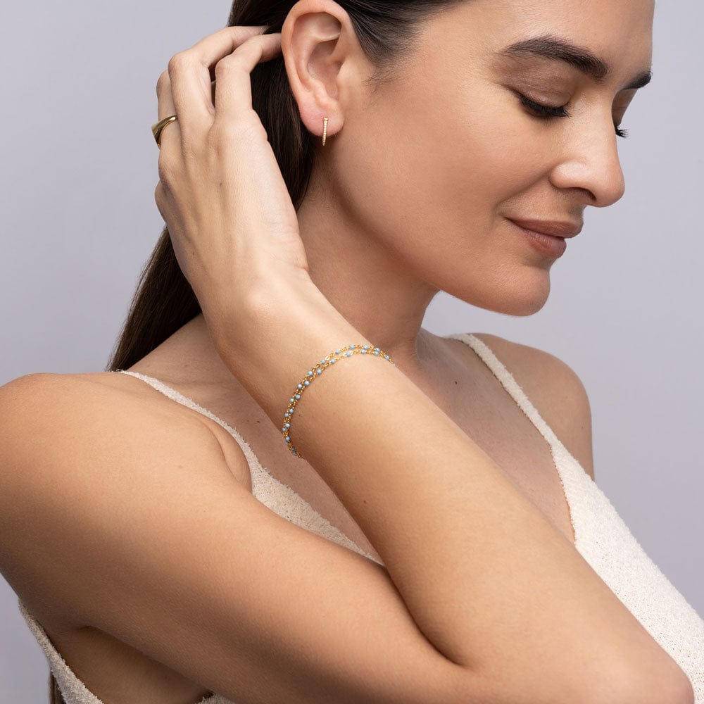 This Double Wrap Enamel Bracelet by Awe Inspired features hand-applied enamel beads for a unique and dainty piece. The bracelet’s double wrap design makes it perfect for wearing alone or layering with other styles.