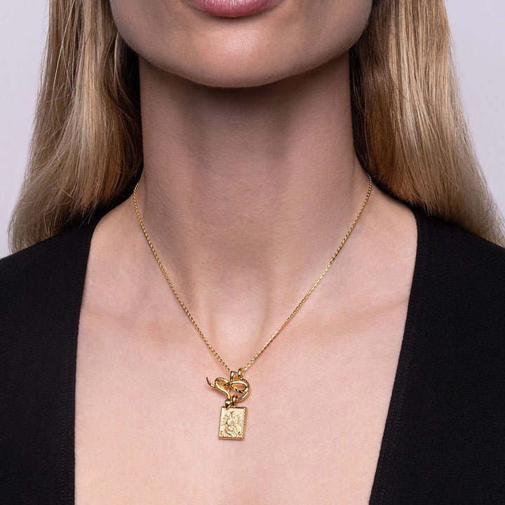 This Mini Lilith Tablet by Awe Inspired celebrates Lilith, the powerful symbol of rebellion and feminine strength. Featuring the snake of knowledge and her loyal lion companions, this pendant helps you reclaim your power and walk free of shame.