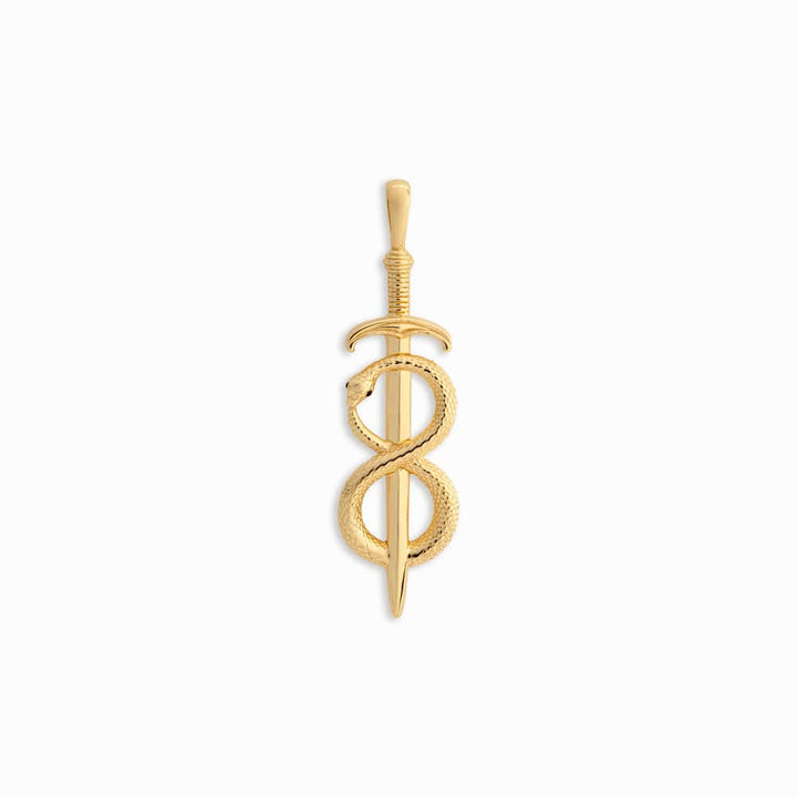 Handcrafted in 14K yellow gold vermeil, featuring a sword and serpent design.