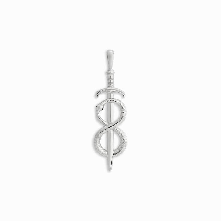 This Sword & Serpent Amulet by Awe Inspired represents courage, resilience, and transformation. The sword signifies the warrior spirit, while the serpent symbolizes rebirth, making this amulet a powerful reminder of strength through change.